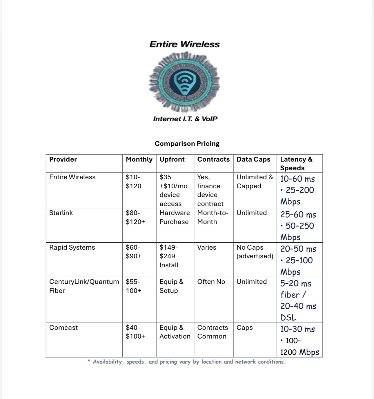 Entire Wireless was founded in the beginning of 2025 and has since then grown into your next reliable high speed wireless internet service